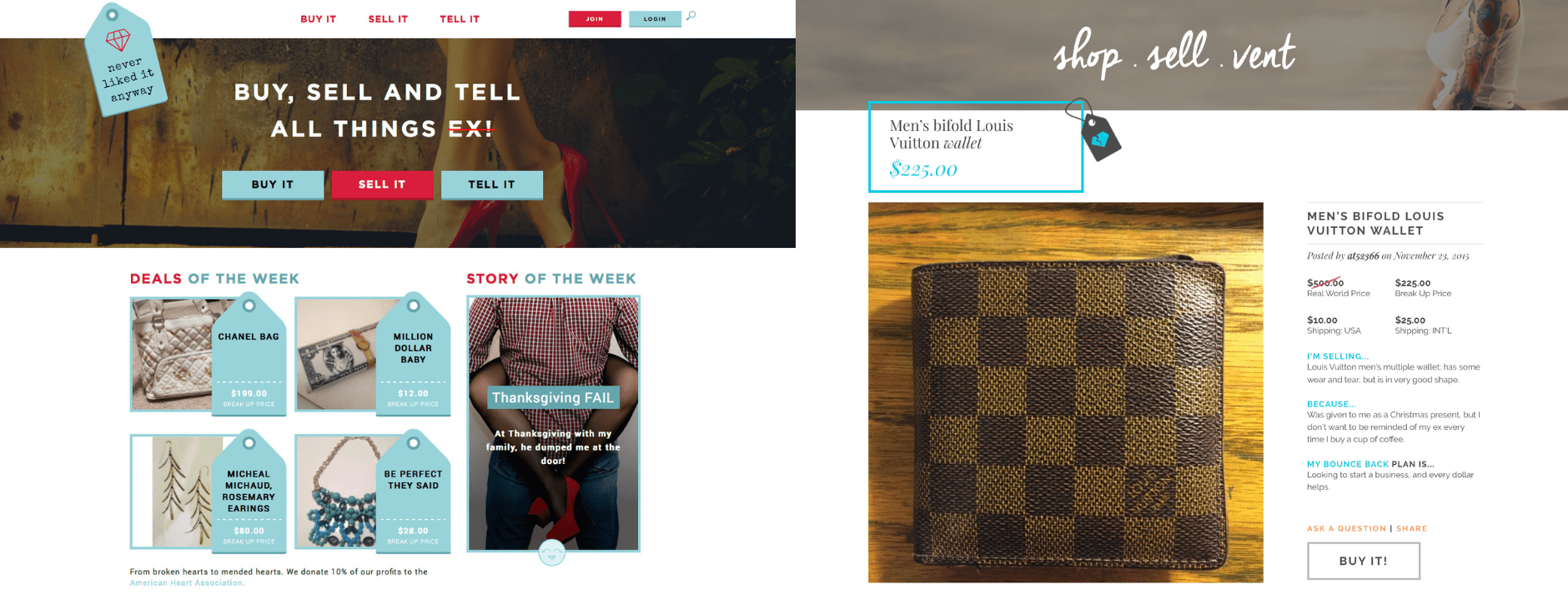 Functioning much like other classified-inspired e-commerce sites, users create profiles, list items, and share their stories, along with their plans for the proceeds. Whether it's unused honeymoon packages, discarded wedding rings, or seemingly ordinary yet personally significant items, each listing signifies someone who is closing a chapter in their dating history. Prices are listed in both their original and “breakup” value.