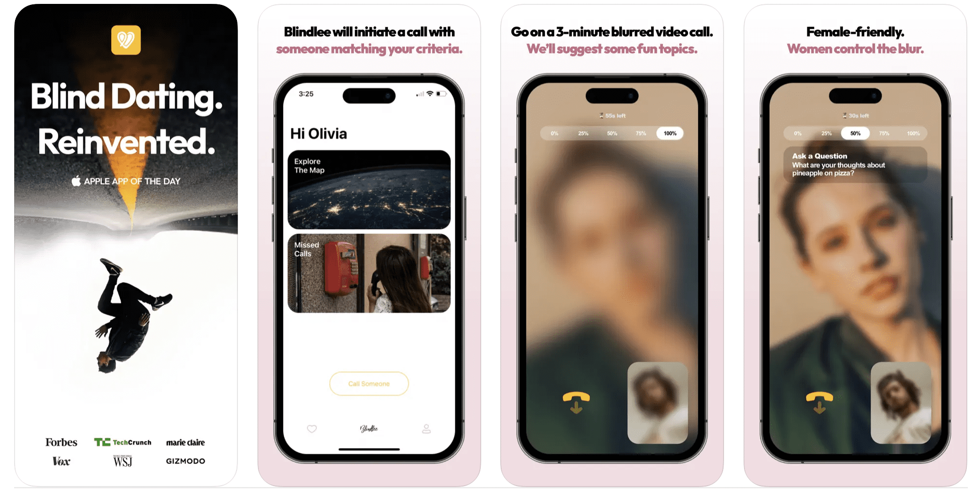 Blindlee is available on both iOS and Android platforms, and it’s free to use, allowing users to initiate random calls based on their preferences. Additional features, such as returning missed calls or direct calls via the map feature, are available to premium subscribers.