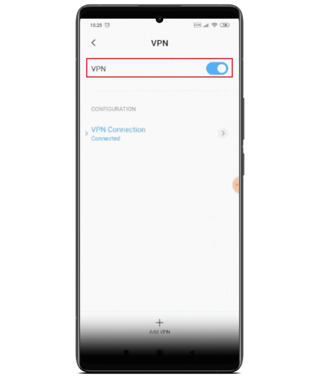 - Tap VPN. The status will be “Connected” if your VPN is on.