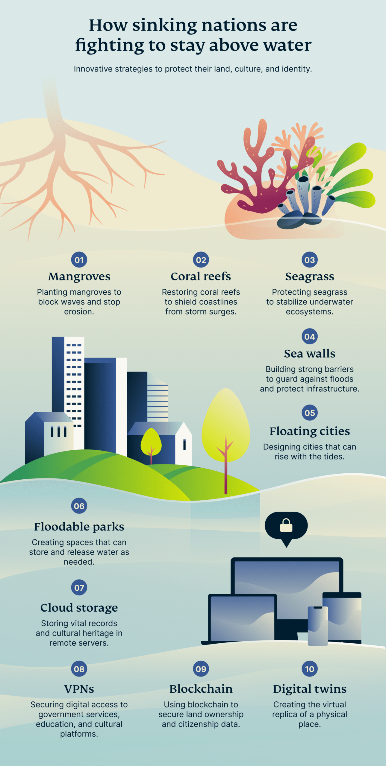 The erosion of a country’s physical infrastructure impacts its citizens in deeply personal ways. For many, their digital identity is an extension of who they are—used to access everything from social services to financial systems. As the land vanishes, so too can access to these important digital lifelines.