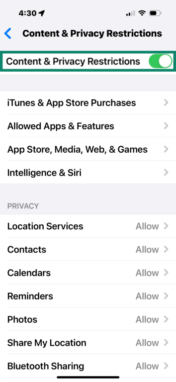 3. Toggle Content & Privacy Restrictions on.