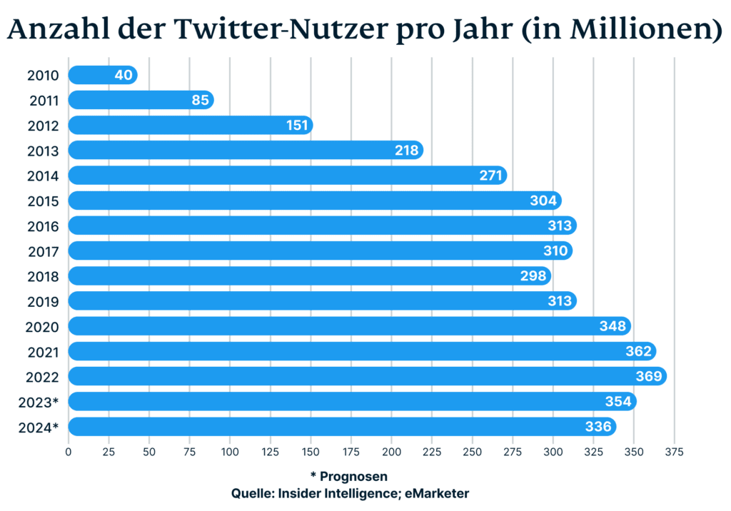 Diese Ansichten werden durch die jüngsten Ergebnisse von Insider Intelligence bestätigt, die vorhersagen, dass Twitter bis 2024 weltweit mehr als 32,7 Millionen Nutzer verlieren werde, weil die Plattform von technischen Problemen und Auseinandersetzungen geplagt wird.