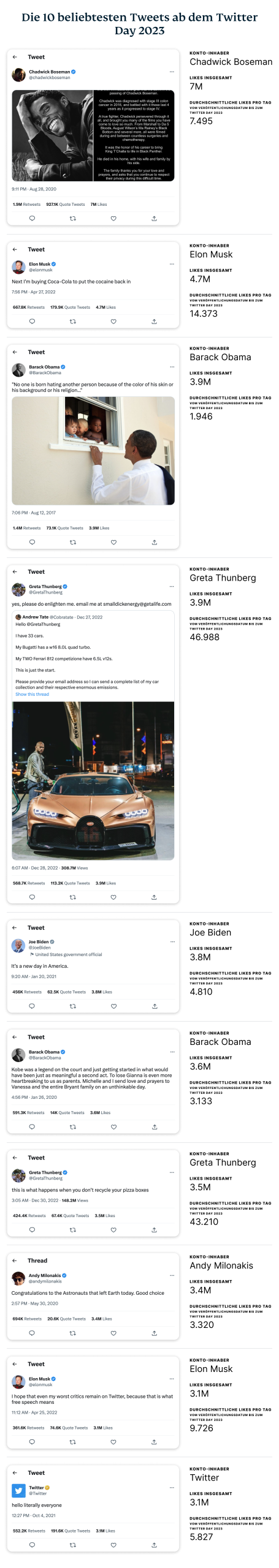 - Ein Post zum Tod von Chadwick Boseman, der von der Familie des Schauspielers verfasst wurde, bleibt der meistgelikte Tweet vor dem Twitter Day 2023.