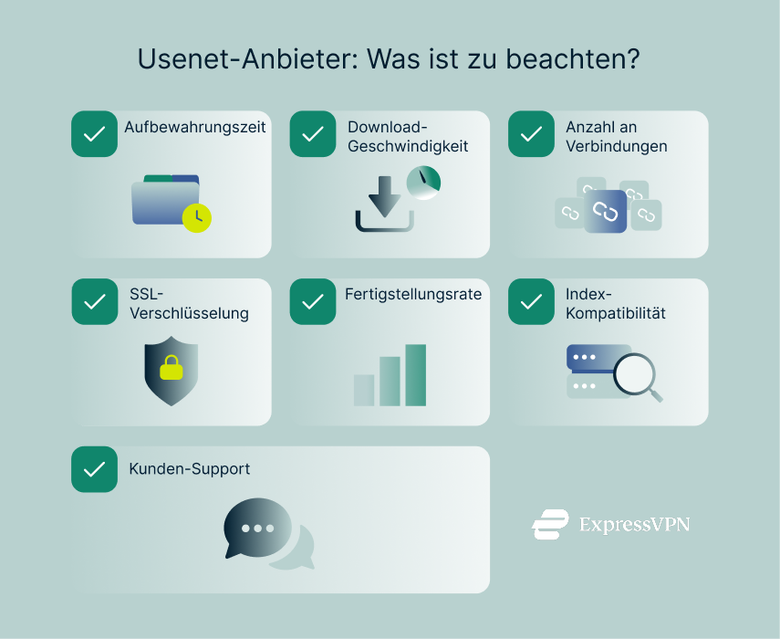 Ihr Erlebnis mit Usenet hängt stark davon ab, welchen Anbieter Sie nehmen. Nachfolgende finden Sie einige wichtige Punkte, auf die Sie achten sollten.