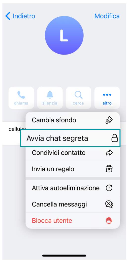 Importante: queste chat non vengono memorizzate nel cloud di Telegram e non possono essere inoltrate ad altri, ma la persona con cui si sta chattando può comunque fare degli screenshot, quindi non è una garanzia di privacy totale.