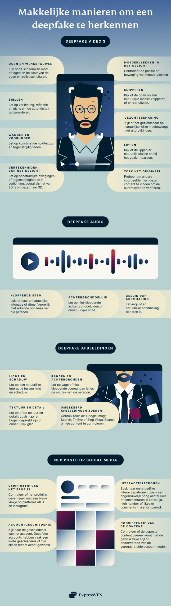 - ExpressVPN, een toonaangevende VPN-provider, biedt een handleiding waarmee gebruikers de veelbetekenende signalen van deepfakes en nep-verkiezingsnieuws kunnen herkennen. Overweeg een VPN-download voor extra bescherming van je online privacy.