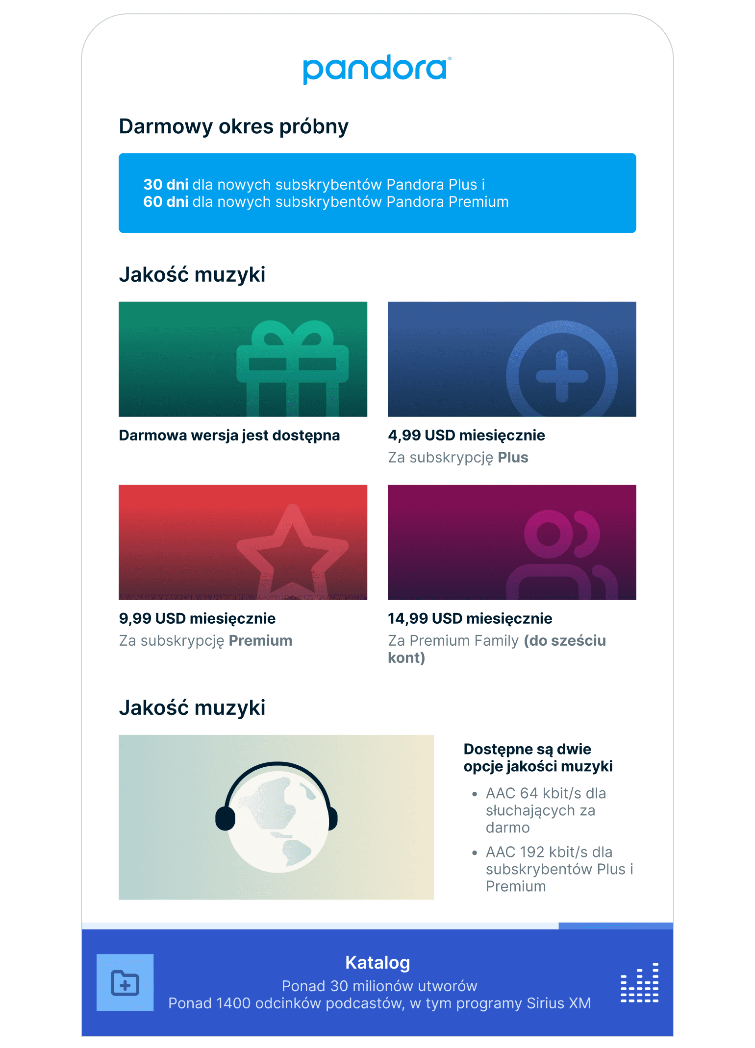 • Inne platformy, takie jak Deezer, Tidal i Pandora, posiadają unikalne oferty i modele cenowe, a także koncentrują się na odkrywaniu muzyki i zapewniają wysoką jakość dźwięku.