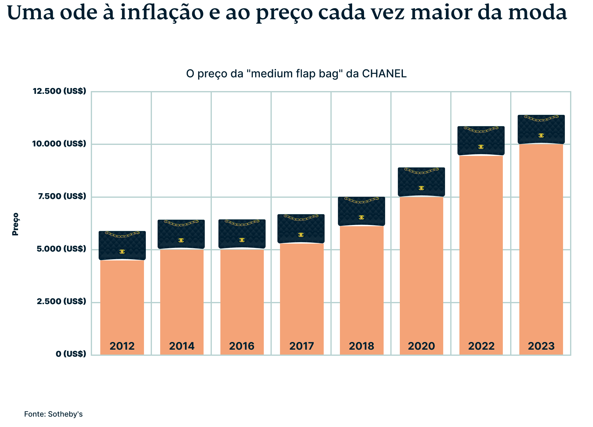 As bolsas da Chanel também testemunharam um aumento significativo no preço ao longo dos anos, sendo o mais recente em março deste ano. A Sotheby's relata que a Chanel aumentou o preço de sua bolsa Medium Classic Flap em 16% (agora é vendida por mais de US$ 10.000). Outros modelos populares, como Coco Handle, Chanel 19 e Pearl Crush, também tiveram um aumento de preço de 14%.