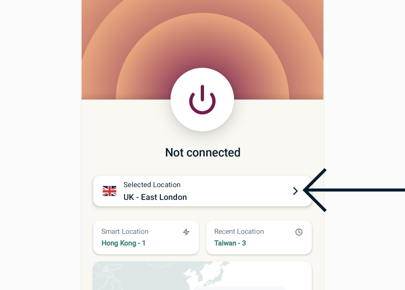 4. เชื่อมต่อกับตำแหน่งเซิร์ฟเวอร์ VPN ในประเทศที่คุณต้องการสตรีม (หากมีหลายตำแหน่ง ให้เลือกตำแหน่งที่ใกล้คุณที่สุด)