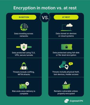 Data is either stored or moving. Each state comes with its own threats and requires different encryption strategies.