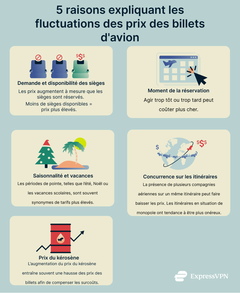 S’il peut exister une corrélation entre vos recherches et les augmentations de prix, des études telles que celle que nous avons mentionnée ci-dessus suggèrent que les fluctuations tarifaires sont bien plus influencées par les tendances en matière de disponibilité et de réservations que par les données collectées par les cookies.