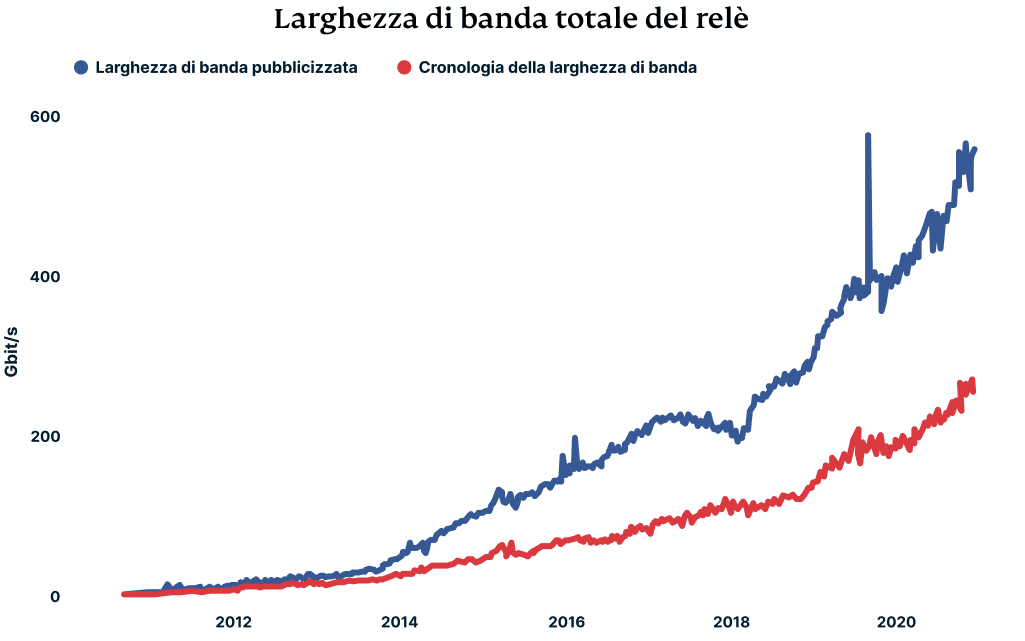 Grafico che mostra gli utenti totali della rete Tor dal 2010 al 2020In pratica, gli indirizzi .onion svolgono anche un'altra importante funzione. Forniscono uno strumento per rendere i tuoi dispositivi raggiungibili all'interno di reti chiuse con firewall rigorosi, come ad esempio i dormitori per studenti o complessi di uffici. Se vuoi utilizzare un server personale in simili strutture, ricorrere a tor e a un indirizzo onion può essere un ottimo modo di rendere questo dispositivo raggiungibile dall'esterno.